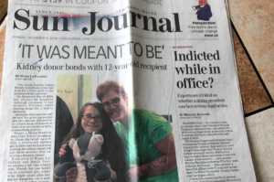 My good friends Roland and Sherrill Danico live in Auburn, Maine. They generously saved an article from the Lewiston Maine Sun Journal newspaper for me. It’s titled “It Was Meant to Be” and is the story of a woman who lost her daughter but avoided total despair by donating her kidney to save the life of another young girl with a rare kidney disease. The story is truly inspiring. Please give it a read if you have chance and thank you again Roland and Sherrill!